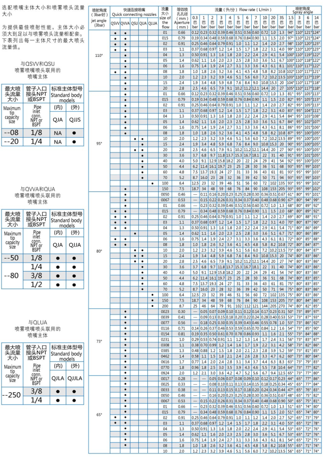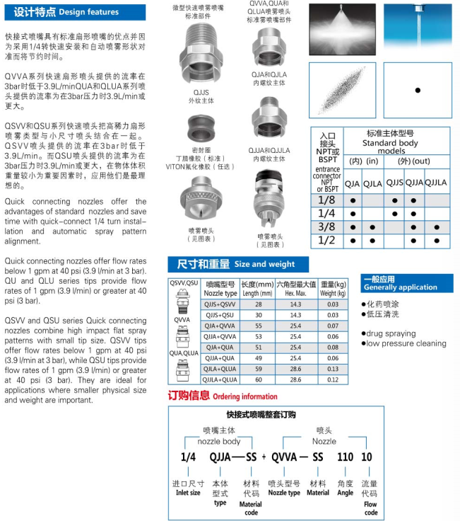 Application consulting: 136 7181 1571 Design Features: The quick-connect nozzle has the advantages of the standard fan nozzle and will save time because of the 1/4 turn quick installation and automatic spray shape alignment. QVVVA series fa